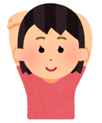 - 両手を頭の後ろで軽く組みます。