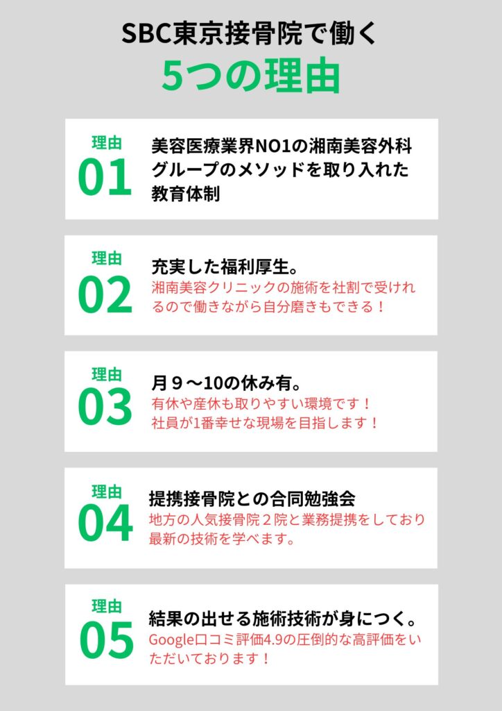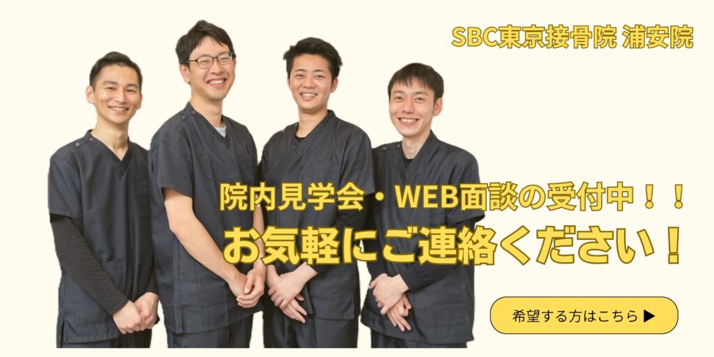 SBC東京接骨院浦安院では実際の院内を見学できたり、働くスタッフに実際の現場の声を聴ける見学会・WEB面談を実施しております。